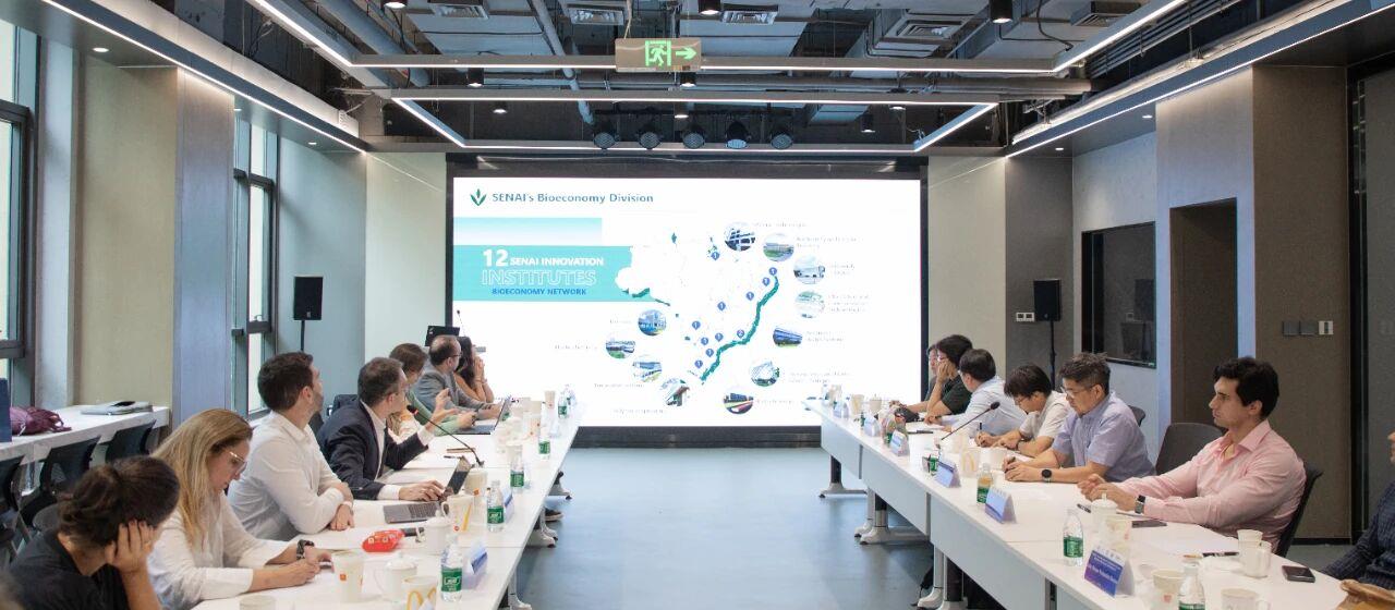 2025年9月2日,巴西全国工业联合会(CNI)及巴西工业进阶院(SENAI)国家总部创新与技术执行总监Roberto de Medeiros Junior先生与清华大学化工系应化所所长、加拿大工程院外籍院士刘德华教授率领SENAI-清华代表团一行二十余人访问绿色康成,围绕巴西生物质资源的高值化利用与生物学产业化应用进行了深入交流。