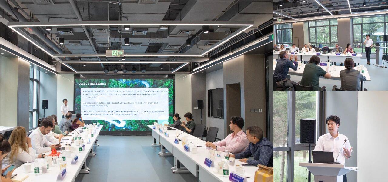 公司总经理陈家琦博士全面介绍了绿色康成在生物学领域的研发体系、产品布局与产业化成果,重点展示了在氨基酸、生物基二元醇等高附加值化合物以及大宗化学品绿色制造方面的技术优势。