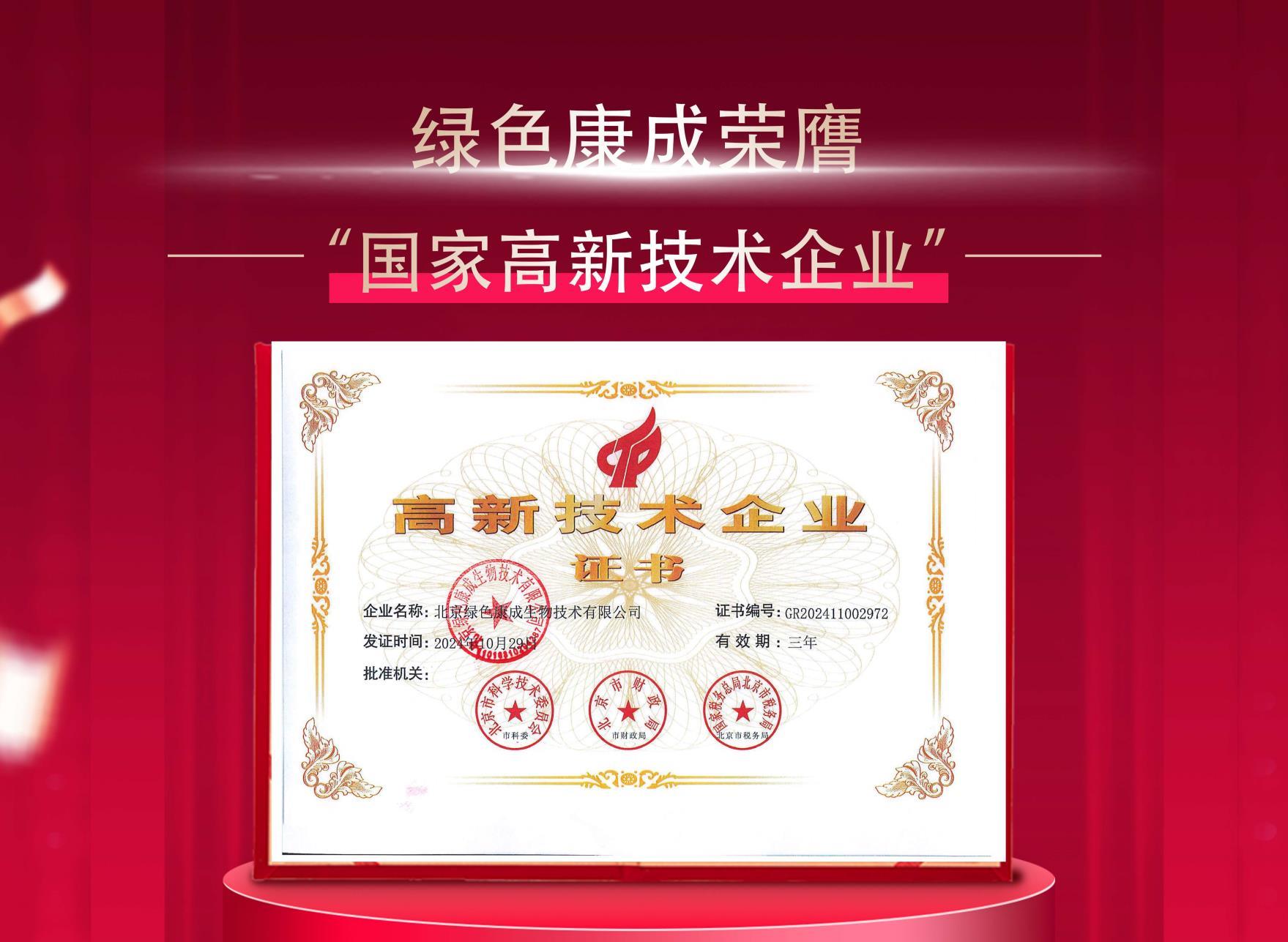 实力见证:绿色康成荣膺“国家高新技术企业”称号