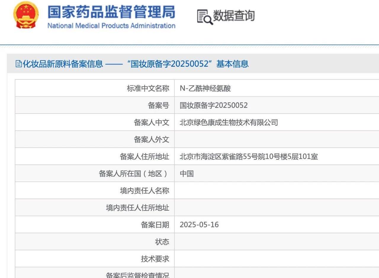 喜讯 | 绿色康成燕窝酸化妆品新原料成功备案